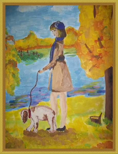 Второе место -На прогулке Головня Валерия, педагог Крутяков Алексей Евгеньевич. Детская художественная школа №4 им. П.И.Котова, п. Верхний Баскунчак