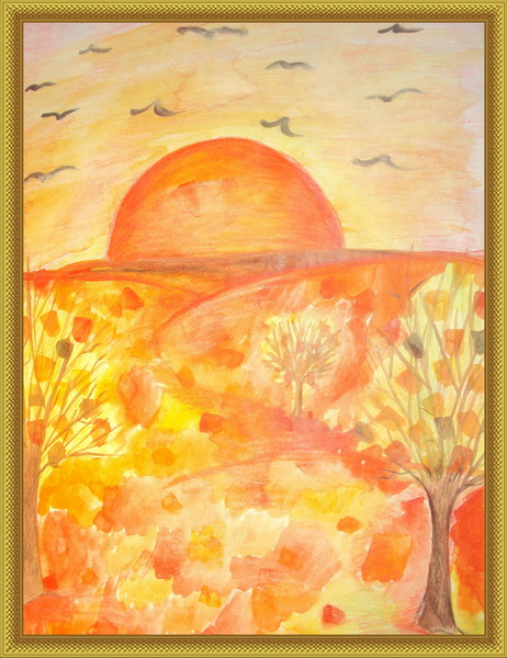 Второе место -"Осенний закат Труш Даниил, педагог Чуйкова Елена Ивановна