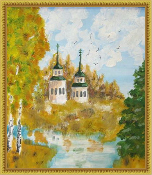Второе место -Осенний пейзаж Портнова Елена, педагог Мельникова Елена Евгеньевна. Средняя общеобразовательная школа им. А.Ф.Иванова, п. Мятлево