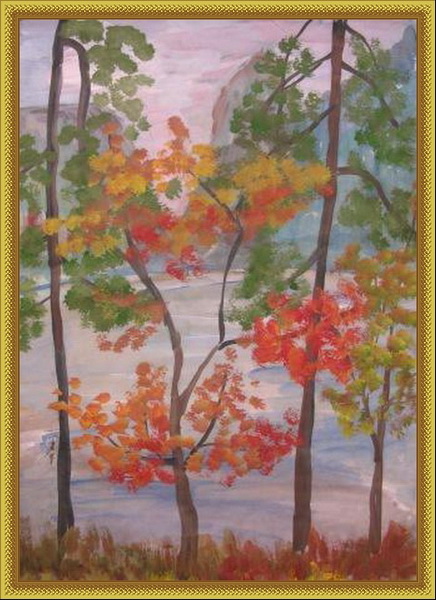 Второе место -Осень в лесу Лесных Аня, педагог Черных Ольга Александровна. Детская школа искусств, г. Катайск