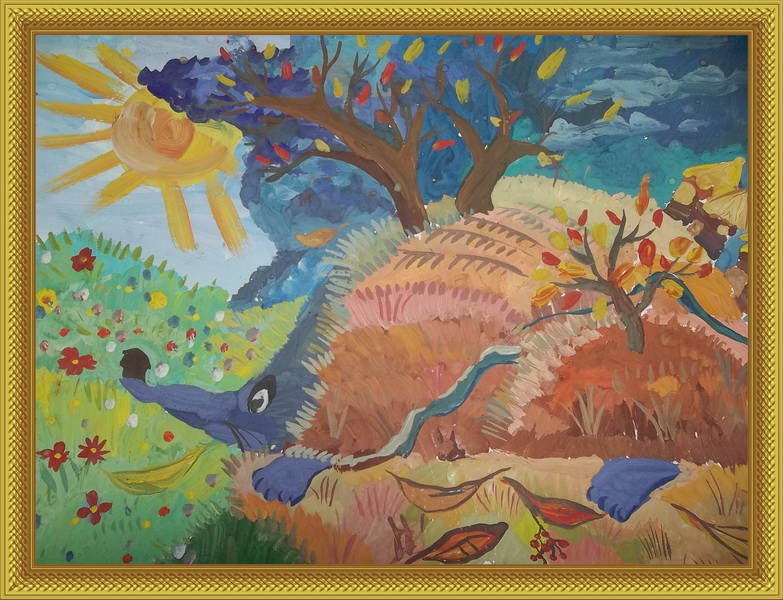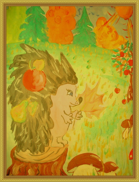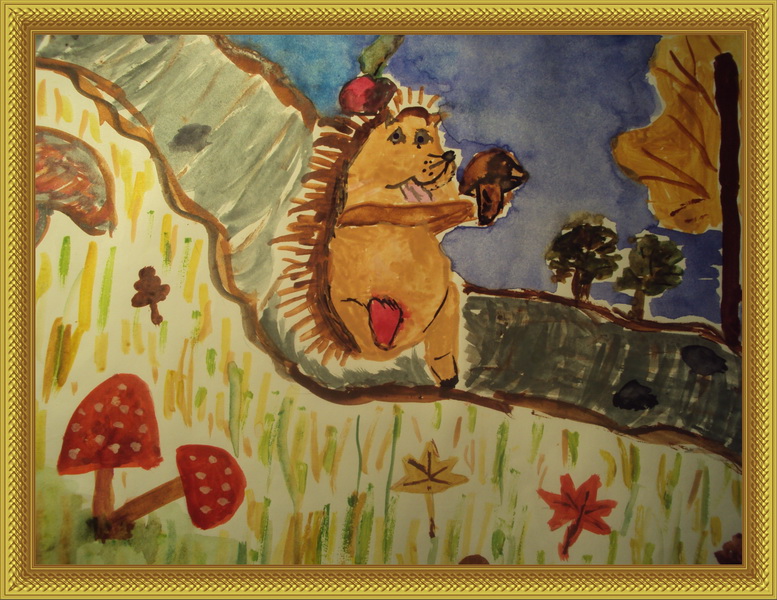 Второе место -Запасливый ёжик Мокшанкина Александра, педагог Литвинова Елена Андреевна. Детская школа искусств им. В.К.Андреева