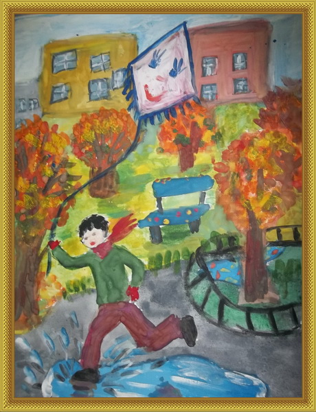 Второе место -Осень в моём дворе Гайдукова Виктория, педагог Лихачёва Ольга Анатольевна. Детский сад №41 "Кораблик"