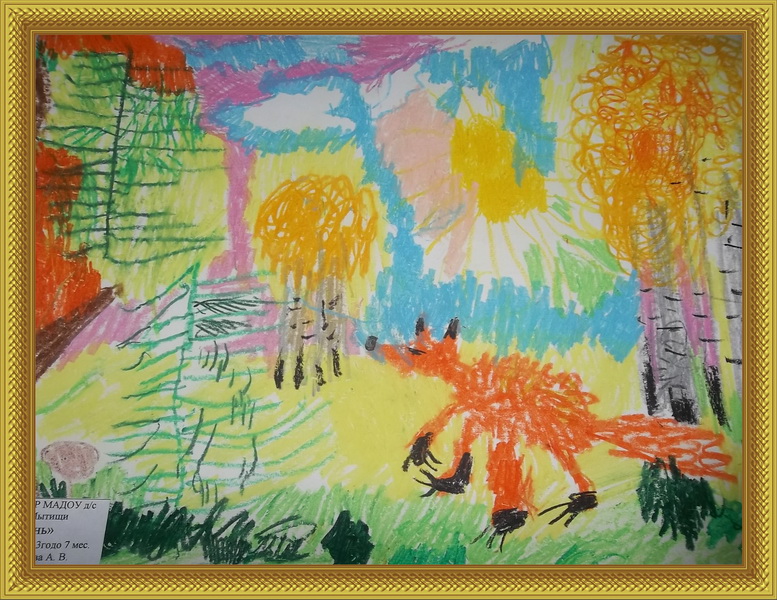 Второе место -Прогулка в осеннем лесу Синяева Диана, педагог Маслова Алла Владимировна. Детский сад №9 "Красная шапочка", п. Текстильщиков