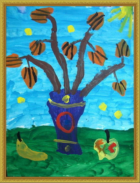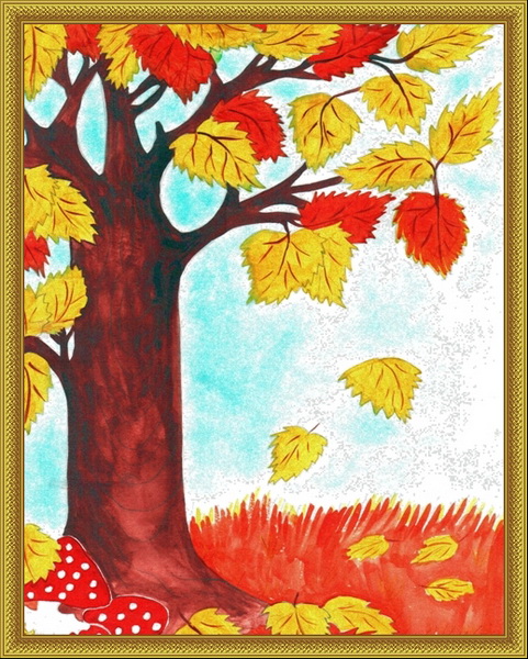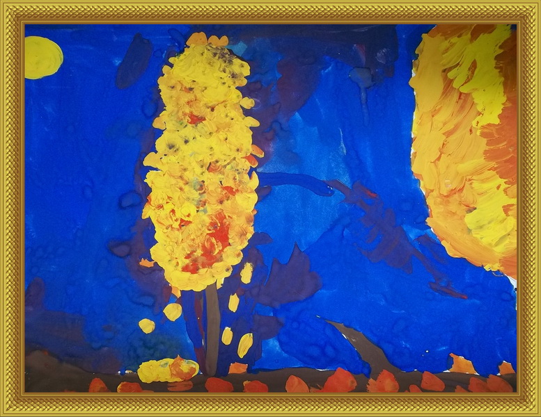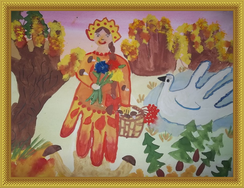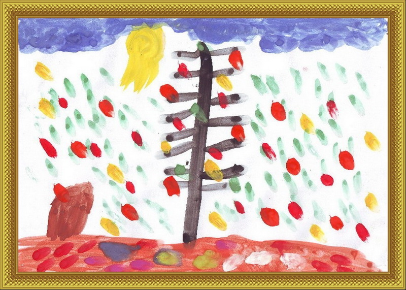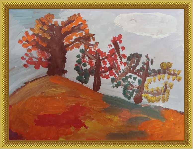 Третье место -Золотая осень Ромашкова Соня, педагог Трифонова Анжела Викторовна. Детский сад №51 "Ёлочка", р-н Мытищи