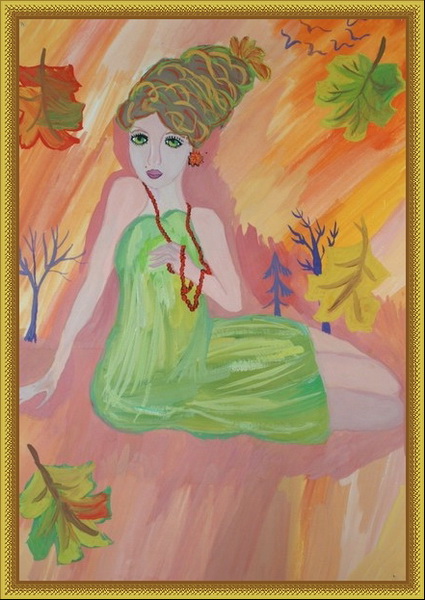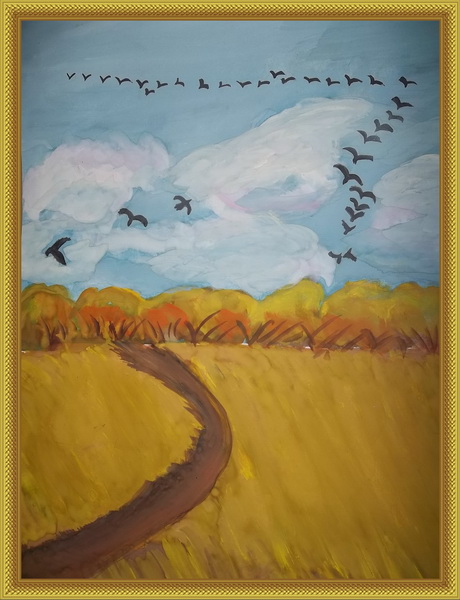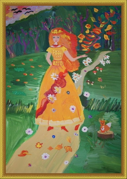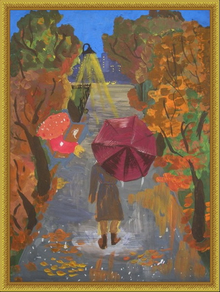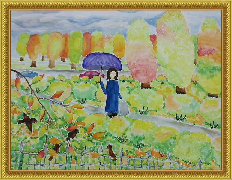 Третье место -Осень идет Кокорева Яна, педагог Мохова Мария Александровна. Школа искусств, р-н Королёв