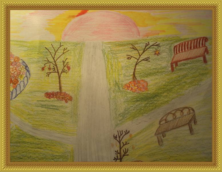 Третье место -Осенний закат Саркисян Ольга, педагог Головкина Татьяна Владимировна. Средняя общеобразовательная школа, п. Ерино