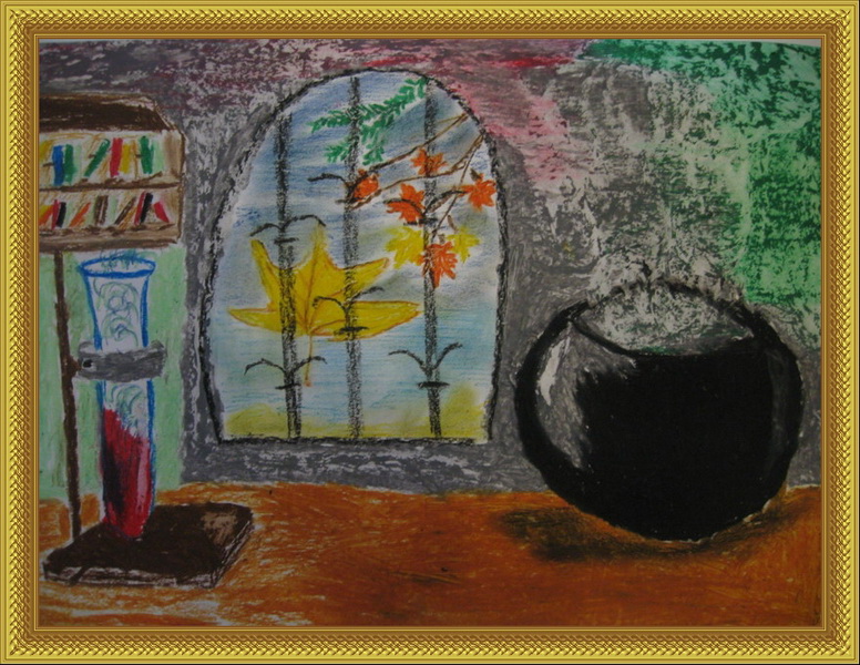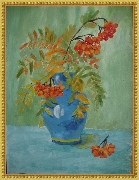 Второе место -Натюрморт Осенний колорит Дроздова Юлия, педагог Ильина Мария Яковлевна. Дом культуры "Белая Дача", р-н Котельники