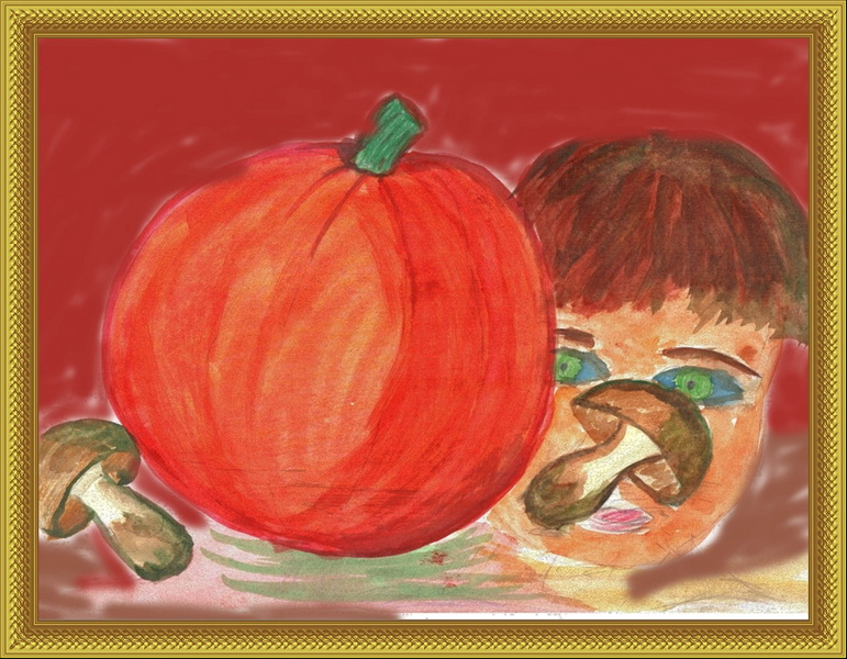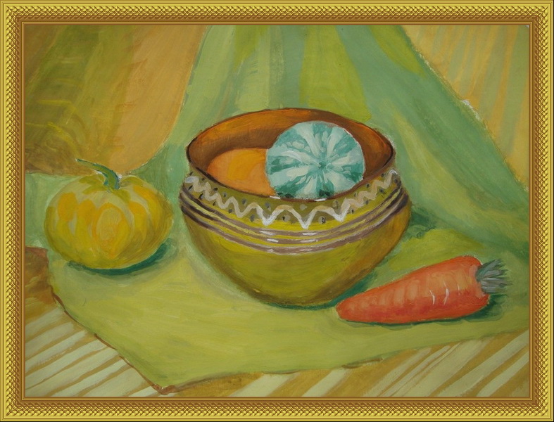 Третье место -Натюрморт с тыквой Саматова Аня, педагог Мохова Мария Александровна. Школа искусств