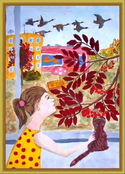 Третье место -Осень - грустная пора Масленкова Маша, педагог Клюшникова Ольга Алексеевна. Художественная школа