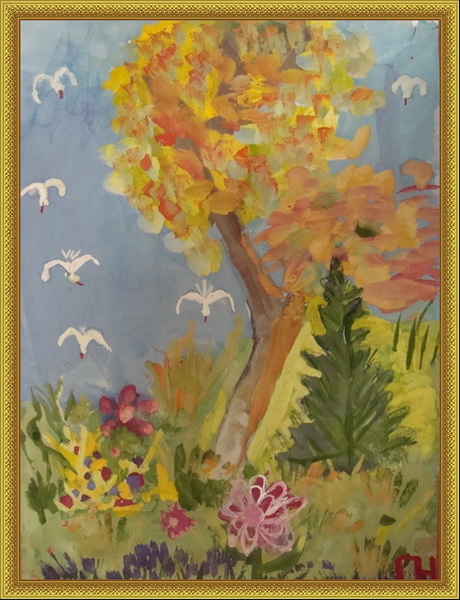 Третье место -Птица осень Ложкина Саша, педагог Ананьева Наталия Владимировна. Детская школа искусств, п. Менделеево
