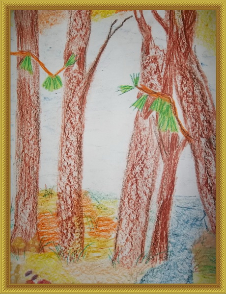 Третье место -Осенний лес Гриненко Ангелина, педагог Ларькова Наталья Евгеньевна. Дом детского творчества, с. Сива