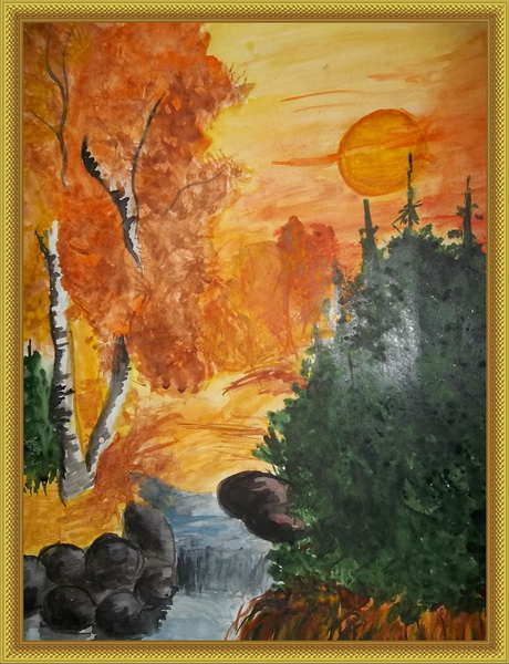 Второе место -Осенний закат Некрасова Юлия, педагог Некрасова Светлана Геннадьевна. Дом детского творчества, с. Сива