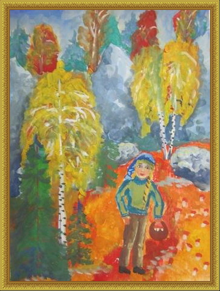 Победитель -Осень на опушке леса Золотаревский Вова, педагог Тёплых Валентина Викторовна. Основная общеобразовательная школа, с. Вторые Ключики