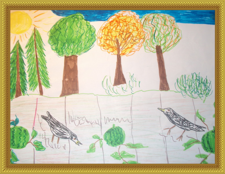 Третье место -Птицы улетают на юг Сазонов Саша, педагог Гаджало Татьяна Ивановна. Детский сад №185, г. Саратов