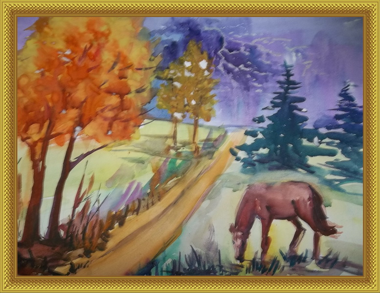 Победитель -Осенний пейзаж Варламова Катя, педагог Погорелова Галина Владимировна. Лицей №3, г. Волгоград