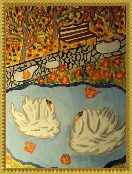 Третье место- Лебеди на пруду Шлепкина Арина, педагог Захарова Елена Леонтьевна. Средняя общеобразовательная школа, Саратовская область, п. Заволжский