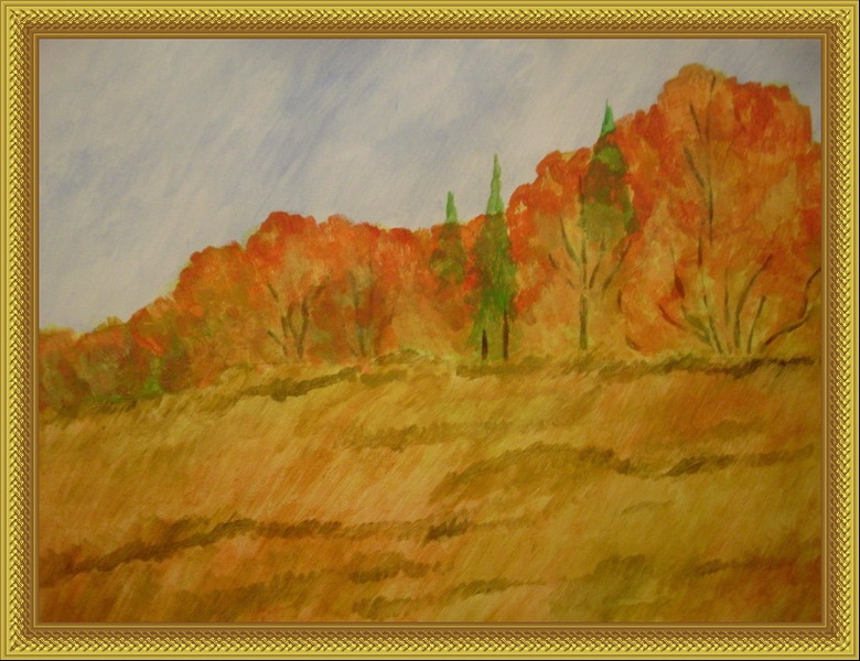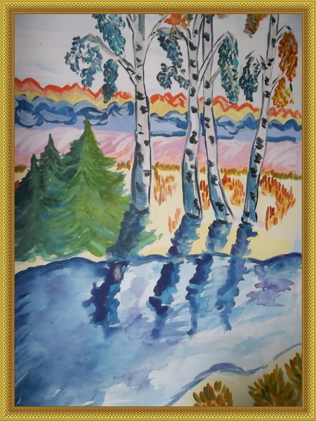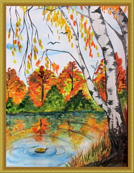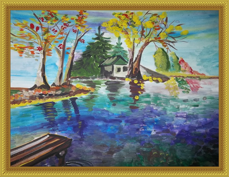 Второе место- Осенний пейзаж Швалева Юля, педагог Закирова Роза Кавыевна. Детская школа искусств, Челябинская область, г. Верхний Уфалей