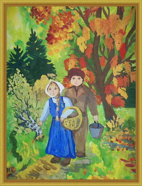 Первое место- В лес по грибы Семёнова Ольга, педагог Шабалкина Татьяна Павловна. Социально-реабилитационный центр "Надежда", Костромская область, г. Буй
