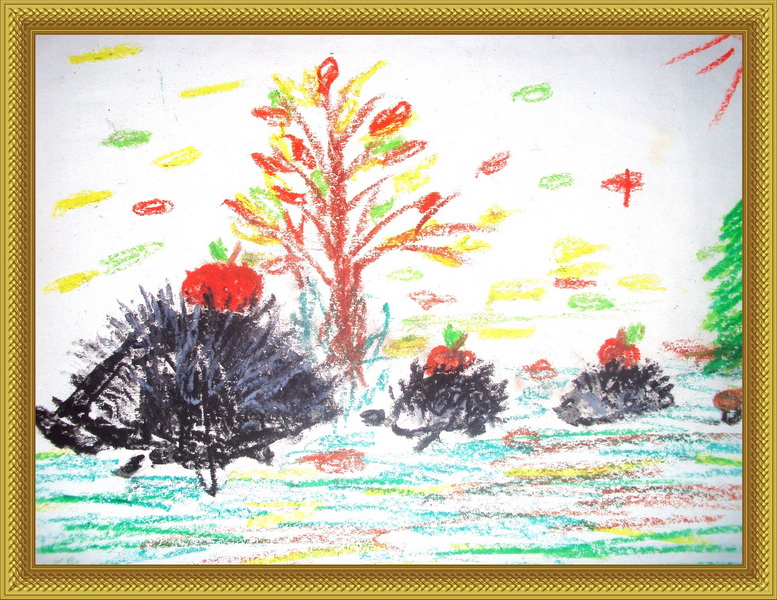 Второе место- Встреча ежей в осеннем лесу Горбачёва Вероника, Потеснова Мия, Швец Марта, педагог Новичкова Любовь Ивановна. Детский сад №1184, г. Москва