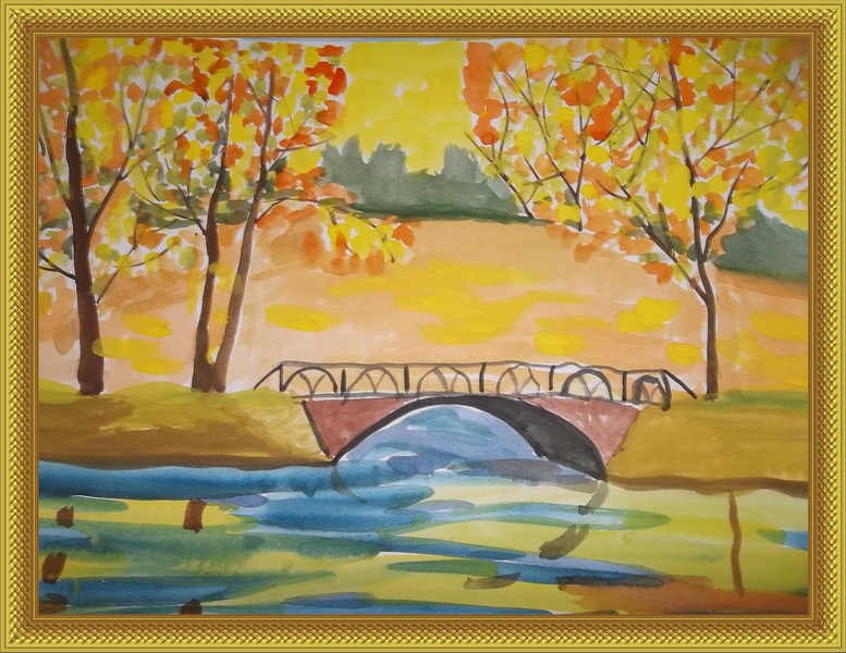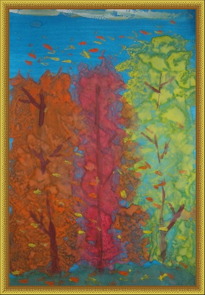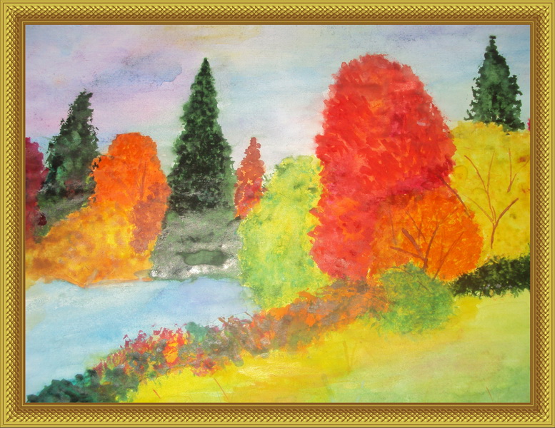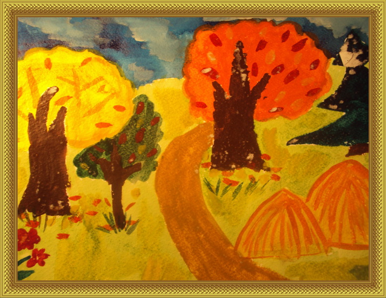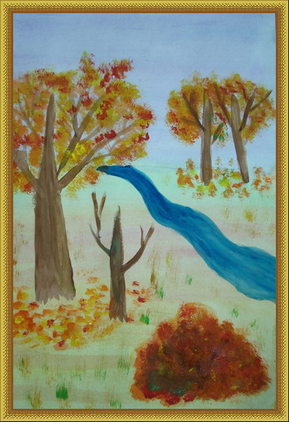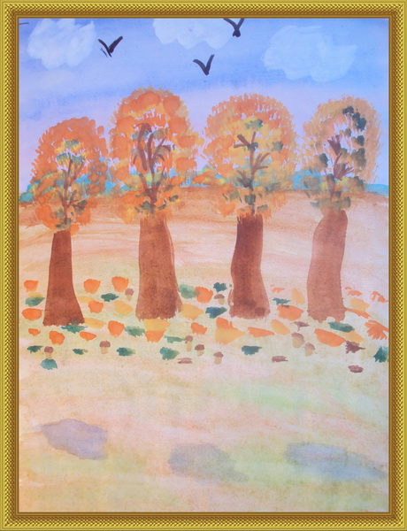 Третье место -Золотая осень Мингазова Элина, педагог Хохуля Наталья Олеговна. Детская художественная школа им. М.Х.Хаертдинова, Республика Татарстан, г. Лениногорск