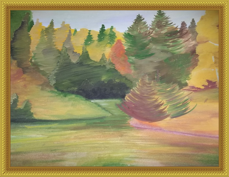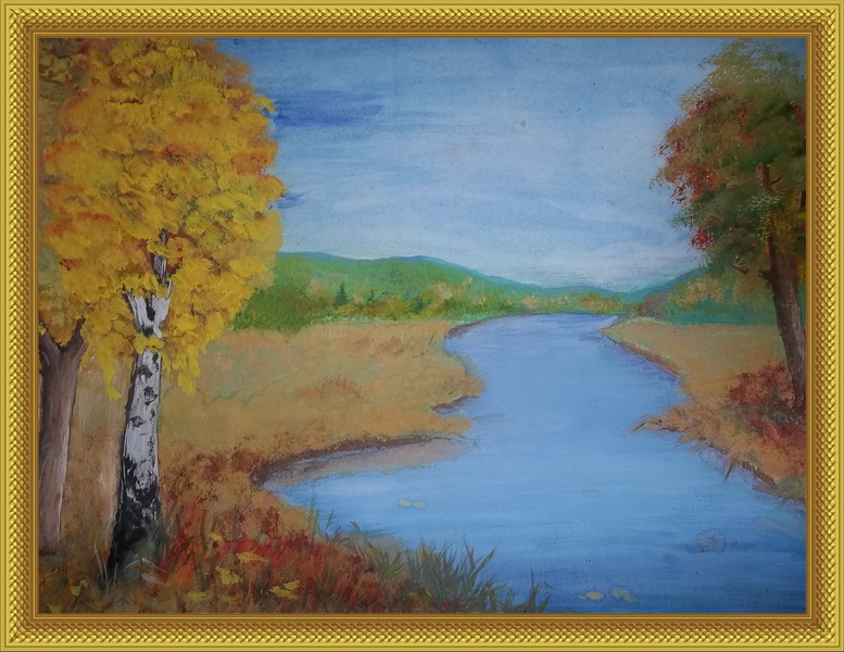 Третье место -Золотая осень в горах Сидорова Екатерина, педагог Прядильникова Ольга Сергеевна.. Детская школа искусств, Нижегородская область, п. Воротынец