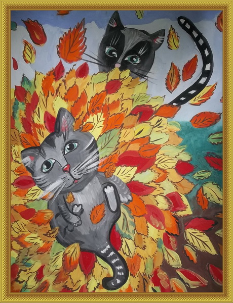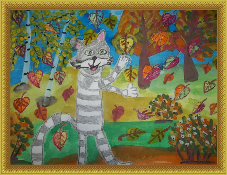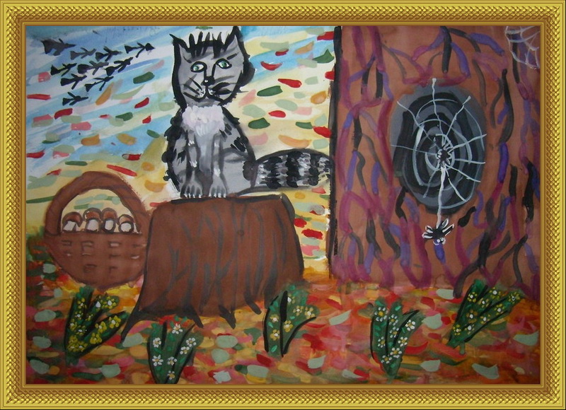 Третье место -Осень. Кошка у лукошка Базулина Милена, педагог Гизатова Назира Назымовна. Детская художественная школа им. М.Х.Хаертдинова, Республика Татарстан, г. Лениногорск