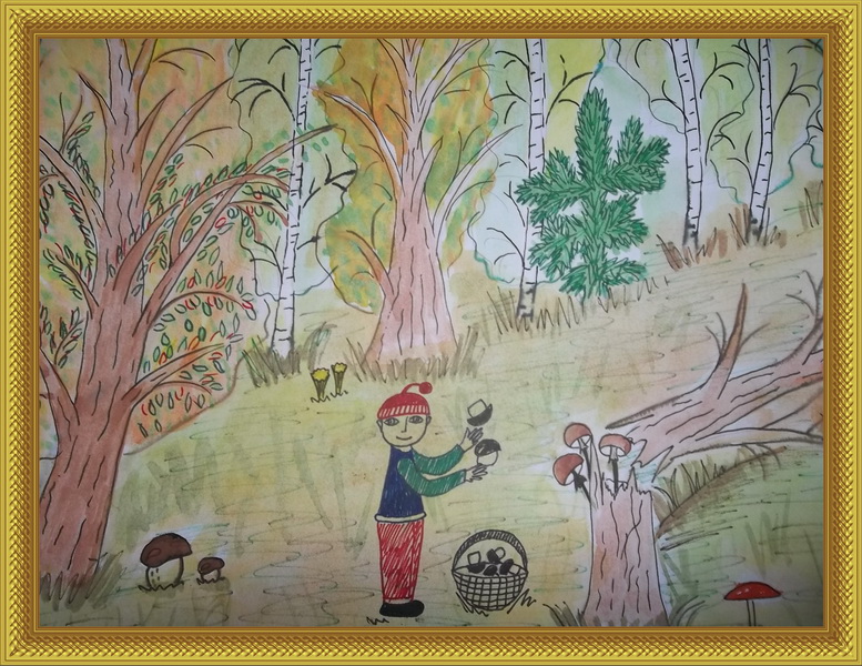 Третье место -По грибы Лебедева Алина, педагог Попова Наталья Васильевна. Средняя общеобразовательная школа, Самарская область, п. Садгород