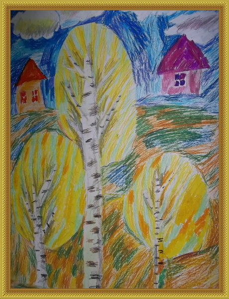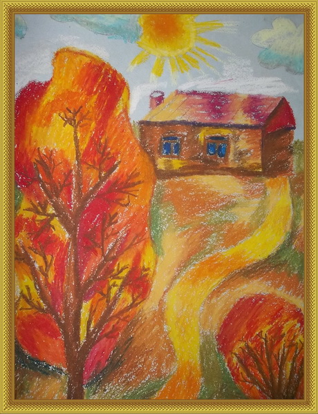 Третье место -Осень в деревне Малыгина Лиза, педагог Гулина Ирина Николаевна. Детская художественная школа, Республика Башкортостан, г. Салават