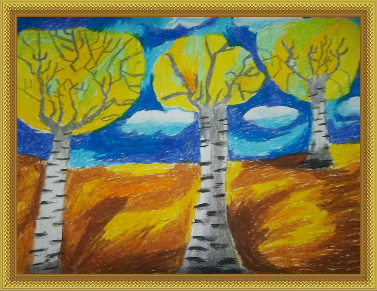 Победитель -Осенние березы Толченников Матвей, педагог Гулина Ирина Николаевна. Детская художественная школа, Республика Башкортостан, г. Салават