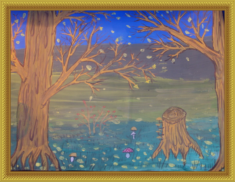 Второе место -Осенний лес Колобянин Кирилл, педагог Булычёва Мария Николаевна. Основная общеобразовательная школа №5, Нижегородская область, г. Бор