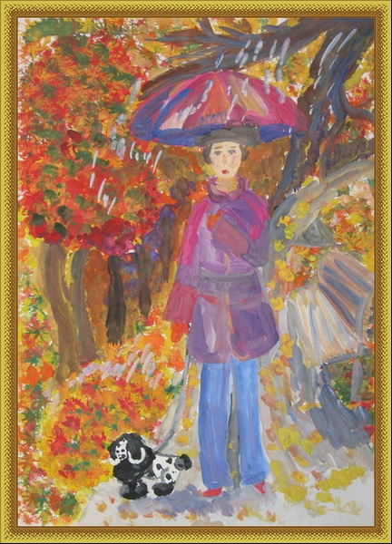 Третье место -Осенний дождь Муллина Юлия, педагог Зыбина Наталья Николаевна. Детская художественная школа №2, Республика Татарстан, г. Набережные Челны