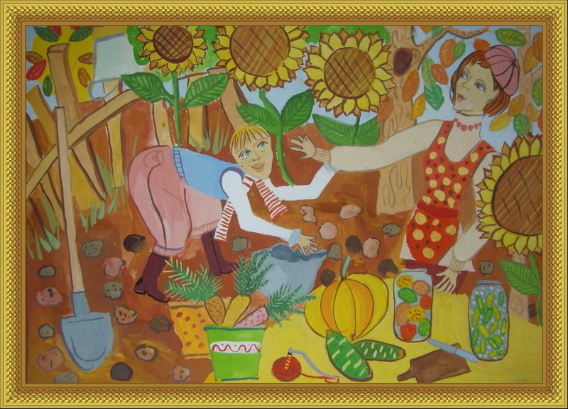 Второе место -Приятные осенние хлопоты Спичкина Наташа, педагог Толстова Эльмира Сагитовна. Детская художественная школа им. М.Х.Хаертдинова, Республика Татарстан, г. Лениногорск