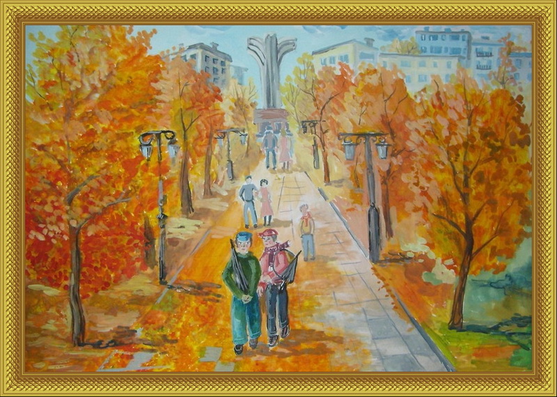 Второе место -Осенний сквер нашего города Курунов Вадим, педагог Зубкова Лидия Дмитриевна. Детская художественная школа им. М.Х.Хаертдинова, Республика Татарстан, г. Лениногорск