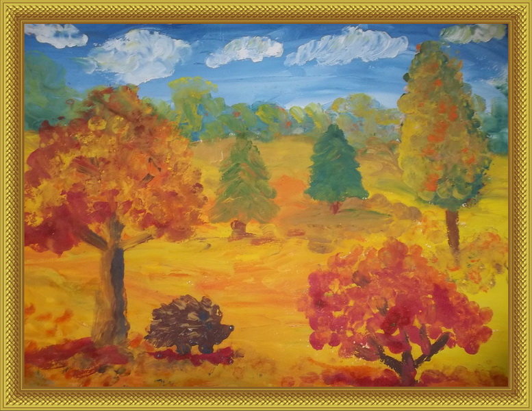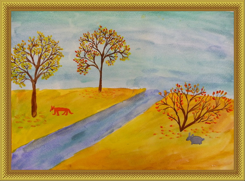 Второе место -Осень Мещерякова Валерия, педагог Пивцаева Нэлла Алексеевна. Средняя общеобразовательная школа №14, Ставропольский край, станица Новотроицкая