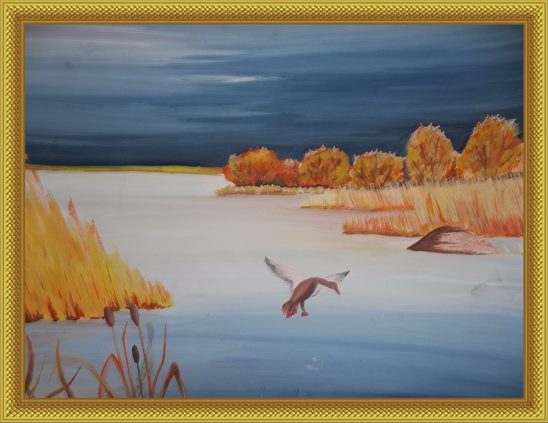 Победитель -Раненная утка на осеннем озере Перегудова Валерия, педагог Куплевацкая Ираида Андреевна. Дом детского творчества, Республика Коми, г. Печора