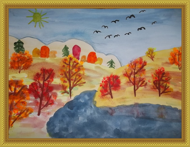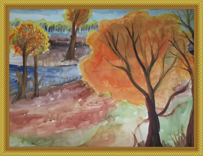 Победитель -Отражение осени Шабрина Марина, педагог Халикова Луния Салимжановна. Дворец творчества детей и молодежи, Республика Коми, г. Воркута