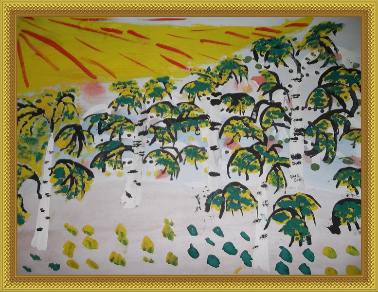 Второе место -Осень в берёзовой роще Ушакова Виктория, педагог Долгова Ольга Николаевна. Дворец детского (юношеского) творчества, Ленинградская область, п. Бугры