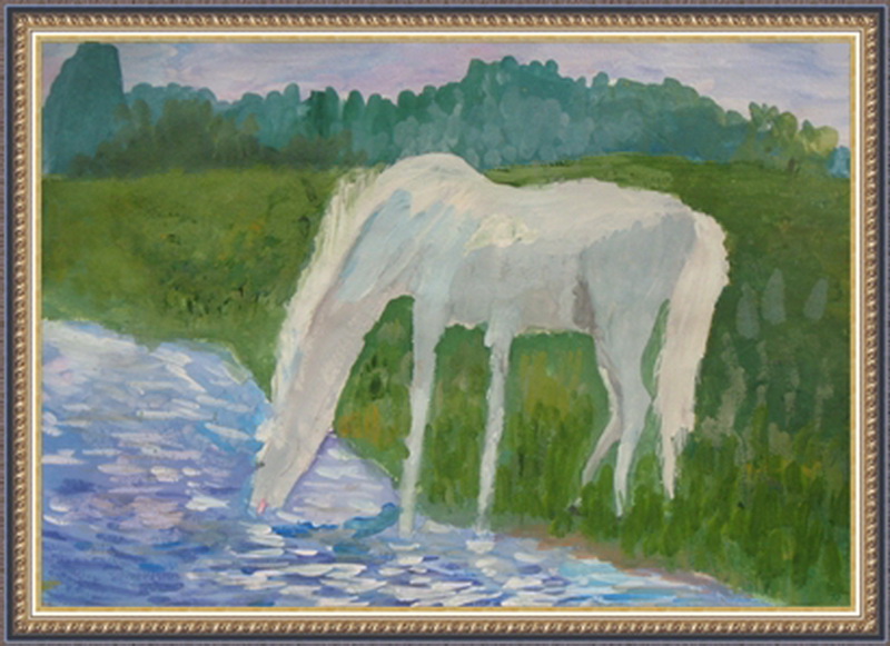 Второе место -Одинокая лошадь Кудряшова Дарья, Детская художественная школа №1, г. Балахна