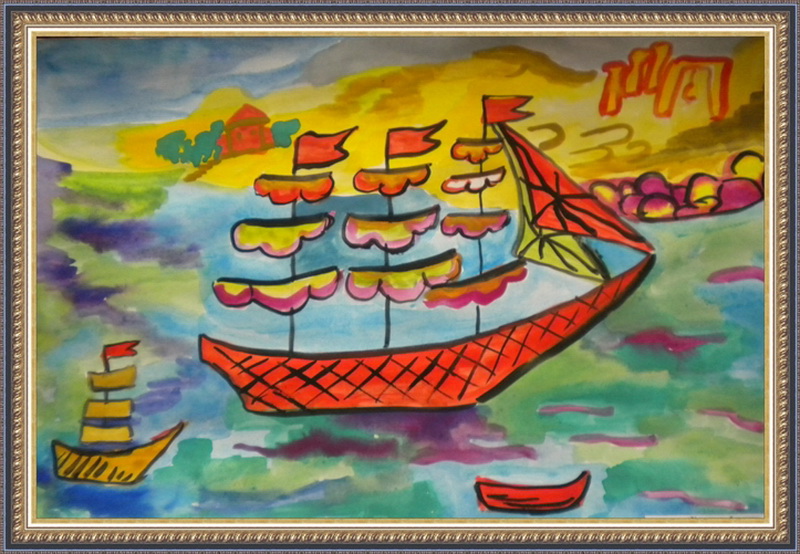 Второе место -Парусник в море во время грозы Зажигина Ирина, Дом детского творчества, Республика Коми, г. Печора