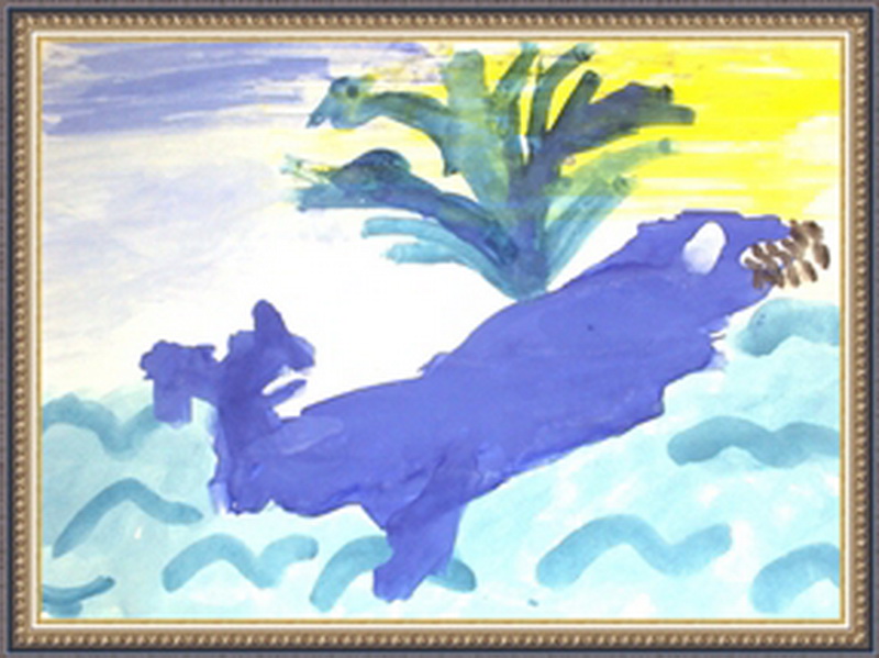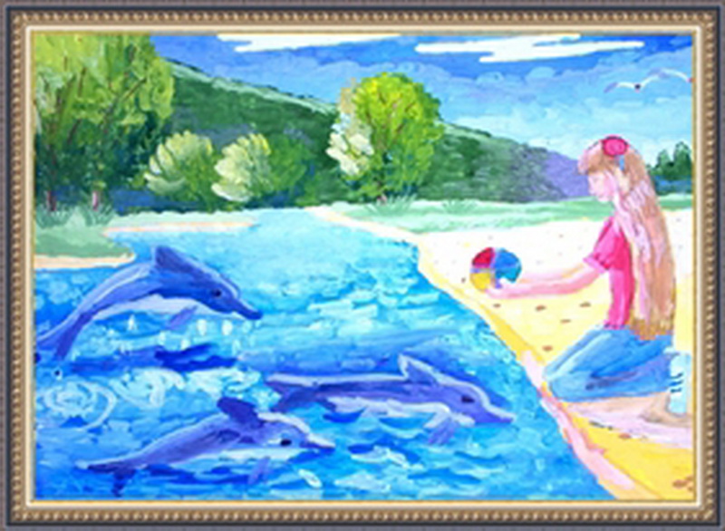 Третье место -Девочка и дельфины Рогова Ксения, Детская художественная школа №4 им. П.И.Котова, Астраханская область, п. Верхний Баскунчак